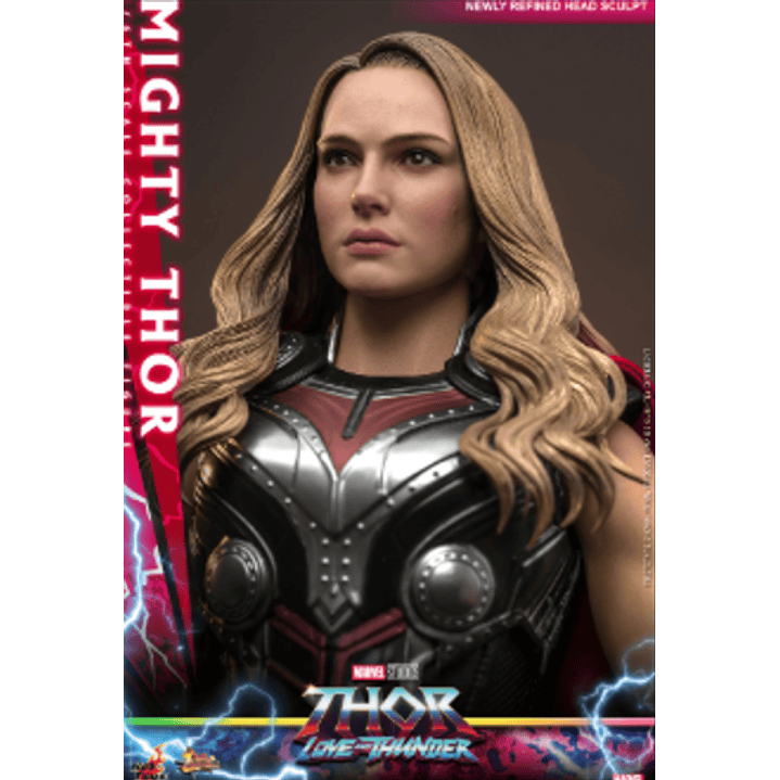 Cuando el martillo místico Mjolnir llama a la Dra. Jane Foster, ella descubre que no puede resistir la atracción del destino. Haciendo su debut oficial en MCU como Mighty Thor, la vida de Jane cambia para siempre cuando misteriosamente llega a poseer el Mjolnir reformado. Sideshow y Hot Toys se complacen en presentar a Mighty Thor como nuestra próxima figura coleccionable de sexta escala inspirada en Thor: Love and Thunder de Marvel Studios.