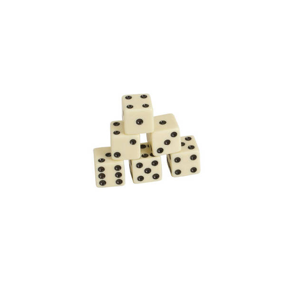 Dados de color marfil de 16 mm con pepitas negras. Se vende por unidad.
